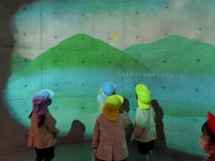 絵本が映像で映し出される部屋もあり、子どもたちはいろいろな本に触れて楽しむことができました。