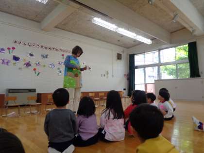 園長先生からもエプロンシアターのプレゼントを見せてもらって楽しそうにしていました。