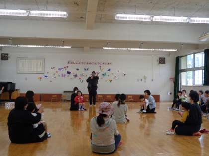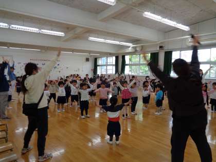 初めて参加する新入園のお友達は、何が始まるのかとドキドキわくわくしていた様子で過ごしていました。