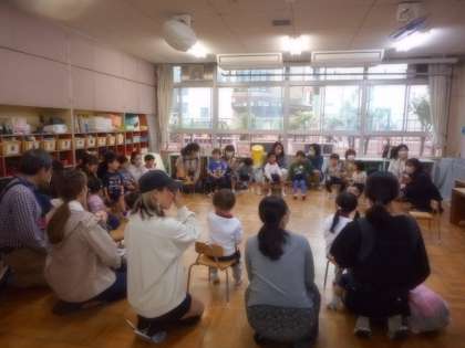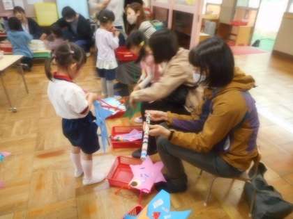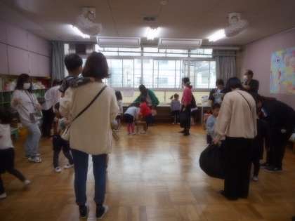 朝の身支度や好きな遊び、こいのぼり製作のお手伝い、じゃんけん遊び、クラス内での自己紹介など楽しい時間をお家の方と過ごしました。あいにくの雨でしたが、たくさんのご参加ありがとうございました。