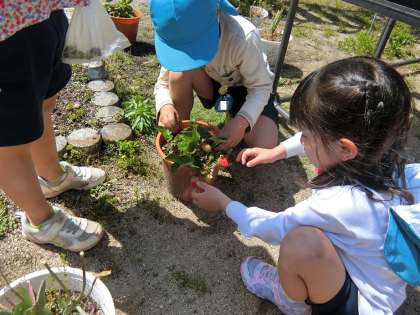 子どもたちの昼食が終わって見に行くと「なくなってる!食べたんや」「やっぱりうさぎもいちごが好きなんや」と大興奮でした。