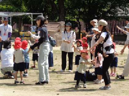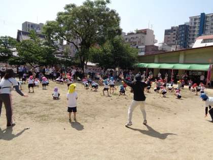 いいお天気の中、園庭で体操をみてもらったり、親子でふれあい遊びをしたり、好きな遊びの様子をみてもらったりしました。