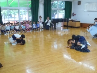 それぞれ好きな動きで入場した5月生まれのお友達。ドキドキ緊張しながらも、堂々と自己紹介をしていました。