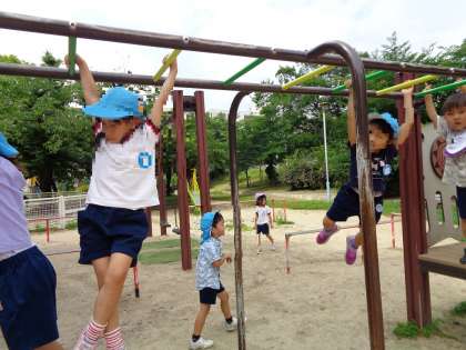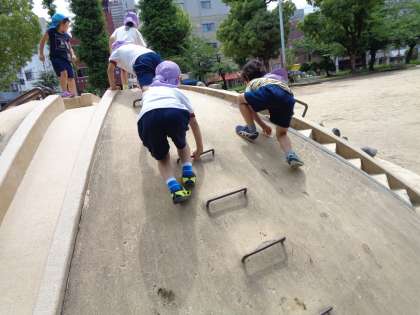 年長児ゆり組・ふじ組が玉造公園に行きました。前回の園外保育が大雨で中止になり、久しぶりの園外保育にとってもわくわくしていた子どもたち。公園で思いっきり楽しんで遊んでいました!