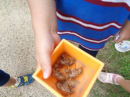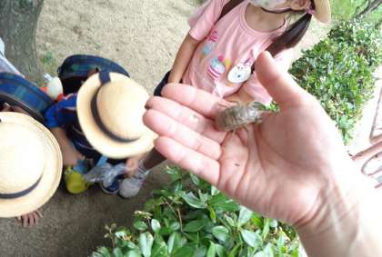 少し弱っていたので、無事に羽化できるか心配ですが、子どもたちは、「頑張れ!」「頑張れ!」と精一杯のエールを送っていました。たくさんの抜け殻を見つけて、大満足な様子の子どもたちでした。今度は、セミも見つけましょうね!