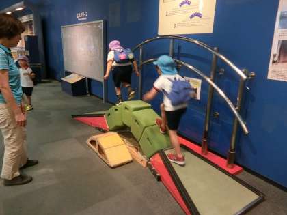 館内にあるいろいろな科学の展示では、実際に遊びながら重力の違いを感じたり、磁石の動きを感じたりしていました。
