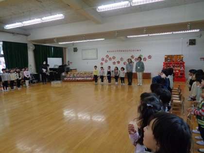 今月の誕生会で今年度はおしまいで、これでみんなひとつずつ大きくなりましたね。次の誕生会はひとつ大きい組さんになってからです。楽しみにしていてくださいね。