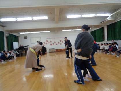 最後に、お家の人とのふれあい遊びや子どもたちが普段遊んでいる体操をしたりしました。