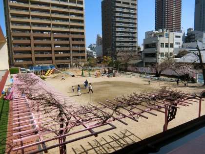 今日は朝からにこにこ(2号認定)の子どもたちと、預かり保育に参加する子どもたちがやってきました。初めての幼稚園にドキドキしているにこにこの子どもたちもいましたが、広い園庭に出ると、元気に走ったり、滑り台をすべったりして遊んでいました。