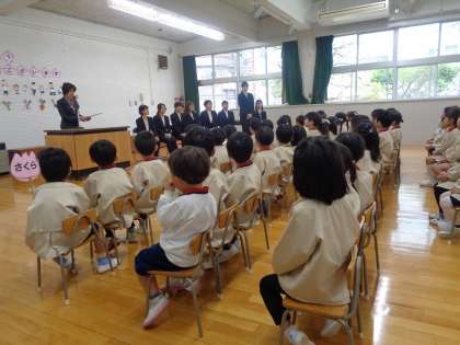 まずは着任式で、新しく着任された先生方の紹介をしっかりと聞いていました。始業式では、新しいクラスの先生や新しいお友達を紹介してもらいました。