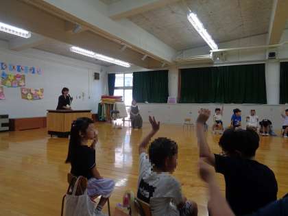 修了して数か月しかたっていませんが、みんなとっても大きくなり、すっかりお兄さん、お姉さんになっていて嬉しくなりました。楽しい時間はあっという間でしたね。これからも小学校で楽しく過ごし、勉強や運動など頑張ってほしいと願っています。いつでも玉造幼稚園に遊びに来てくださいね!