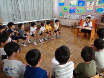 その後、けがをしたら先生に言ってくること、転んで砂や泥がついている時は洗い流すこと、鼻血が出た時は上を向いたりかんだりせず下を向いて鼻をつまむこと、も伝えました。そして、「いつ・どこで・なにをしていて・どうなったのかをお話してね」ということも伝えています。