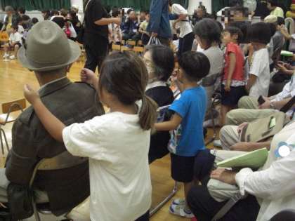 「かたたたき」のふれあい遊びをしたり、おじいさま おばあさまに昔遊びを披露していただいたりしました。