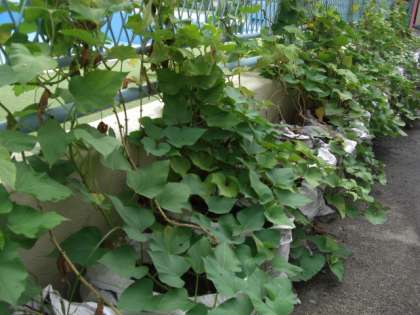 実りの秋も近づいてきており、園庭のさつまいもが順調に育ち、葉やつるもぐんぐんと広がっています。柿の木にも実がたわわに実り、日に日にオレンジ色に色づき始めました。