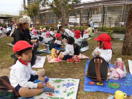 動物園に着くと、たくさんの動物に大喜び!「見て!きりんめっちゃ大きい」「何食べてるんやろう?」など友達や先生と話しながら動物を見ることを楽しみました。