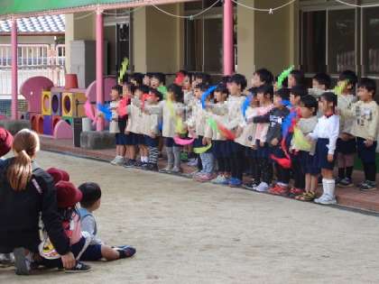 そして12日には、音楽会で歌った曲を年少中さんや、園庭開放に来られた未就園児のお友達と保護者の方に、園庭で見ていただきました。堂々と自信たっぷりの素敵な声を聴いてもらえてとても嬉しそうでした。