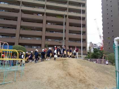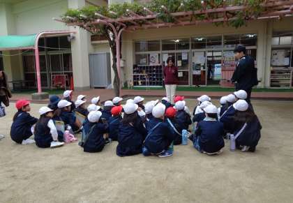 今日は玉造小学校の2年生が、町探検で幼稚園にやってきました。