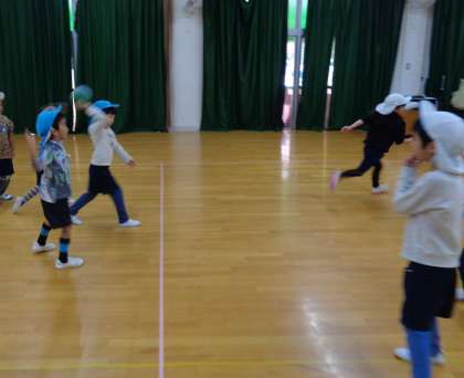 ねらってボールを投げたり、当たらないように逃げたりするなど、ルールを理解して子ども同士で考えを伝え合い、楽しんでいます。