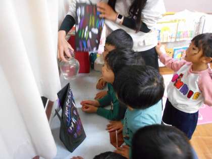 少し前から育て始めたヒヤシンスの球根に子どもたちは興味津々! 「暗いところでお休みしている間に大きくなるんだって♪」とお知らせすると、びっくりした様子。毎朝登園してくると、「大きくなったかな? 見てもいい?」と気にかけています☆