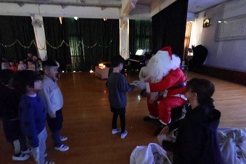 「本当に来てくれた!!」と、子どもたちは目を輝かせていました。サンタさんに聞いてみたいことを質問をしたり、一人一人プレゼントをもらったりして楽しいひと時を過ごしました♪
