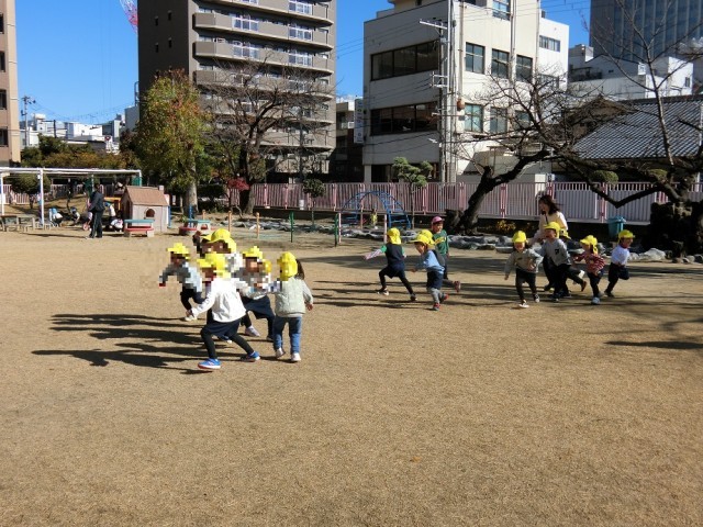 登園したときは「今日は寒いね」と話していた子どもたちも、お外で遊ぶと体はぽかぽかになって、たくさん体を動かして楽しんでいます。