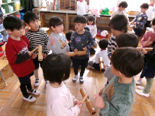 「今日はゆり組さんと一緒に楽器で遊べるよ」と伝えると、朝からワクワク ソワソワしていました。