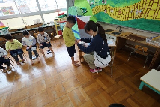 「せいけつしらべは何を見るんだったかな?」と子どもたちに問いかけると「爪の長さを見る!」・・「他には?」「ハンカチとティッシュ持ってるか見る!」と1・2学期にした「せいけつしらべ」を覚えていました。