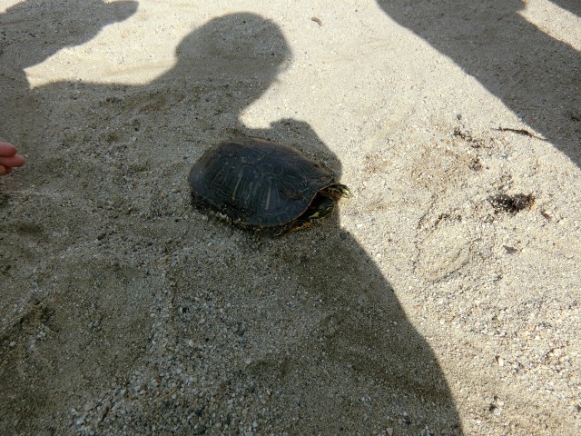 子どもたちも亀を見つけると、駆け寄ってきて夢中になって見ていました。