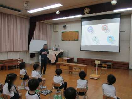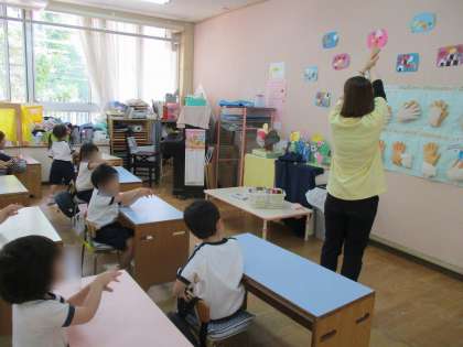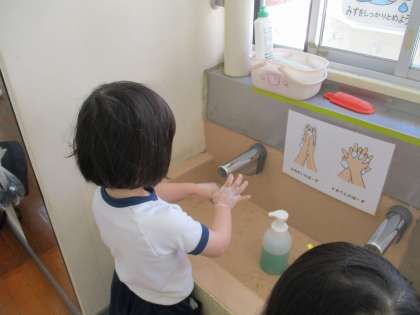 5月は手洗い・うがいについての保健指導を行いました。どんな時に手洗い・うがいするのかや正しい手の洗い方を知らせました。さくら組(年少)は初めての保健指導でしたが、教師の真似をしながら歌にあわせて手を洗うことができていました。指導後も手洗い場の掲示を見ながら丁寧に手を洗う姿が見られます。これからも続けて毎日元気に過ごしましょうね!