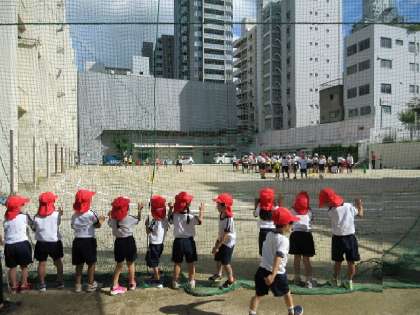 今日は、中大江小学校の運動場で6年生がリレーをしていました。小学生の走る姿は幼稚園の子どもたちにとって憧れです!