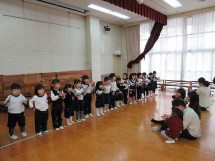 さくら組さんありがとう 公開日 2025/01/15 更新日 2025/01/15 幼稚園日記 1月のなかよしデーは遊戯室で遊びました。未就園児のお友達は遊戯室で遊んだ後に、先生に大型絵本を読んでもらったり、さくら組(3歳児)の歌を聞いたりしました。幼稚園では一番年下のさくら組さんだけど、未就園児のお友達に素敵な歌声を聞かせてくれてとってもかっこよかったです。 いいね(0)
