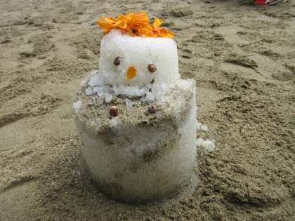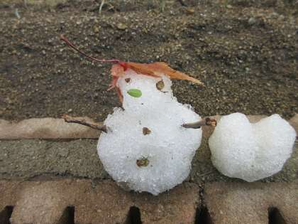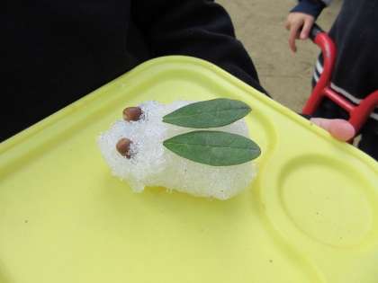 先日の雪遊びの雪で、今日は園庭でも楽しく遊ぶことができました。かわいい雪だるまがたくさんできました。