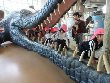 お別れバス遠足で「堺市立ビックバン」へ行きました。きく組(5歳児)と一緒に行く最後の園外保育でした。いろいろな遊びの場で、きく組さんと楽しく遊びましたね!幼稚園での大切な思い出がまた一つ増えました。