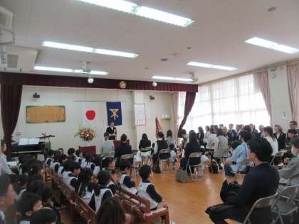 令和7年度 入園式 公開日 2025/04/10 更新日 2025/04/10 幼稚園日記 令和7年度入園式を行いました。 進級児が新入園児に、元気いっぱいにお祝いの言葉や歌・合奏を披露してくれました。また、たくさんの地域の方々もお祝いにきてくださいました。新入園児のみなさん、明日から中大江幼稚園でたくさん遊びましょうね!待っています! いいね(0)