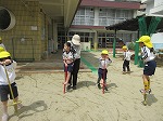 きく組では、戸外遊びで様々な運動遊具に取り組む「がんばりタイム」を楽しんでいます。バランスペダルやホッピング等、やってみたい運動遊具を見つけ、教師や友達と一緒に、やってみようと挑戦する姿が見られます。