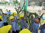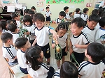 きく組(5歳児)が、タマネギの収穫をしました。「大きいね」「タマネギの匂いがする」「ひげがある」と収穫をみんなで喜びました。たくさん収穫できたので、さくら組(3歳児)やばら組(4歳児)にもおすそ分けをしました。
