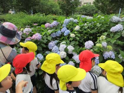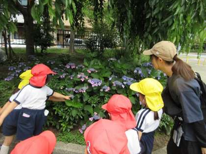 アジサイを見たよ 公開日 2025/06/13 更新日 2025/06/13 幼稚園日記 ばら組(4歳児)ときく組(5歳児)で手を繋いで、中大江公園に散歩に行きました。前回行ったときには見られなかったアジサイを見つけ、「青と水色をしているね!」「綿あめみたい」と季節の変化を楽しみました。 いいね(0)