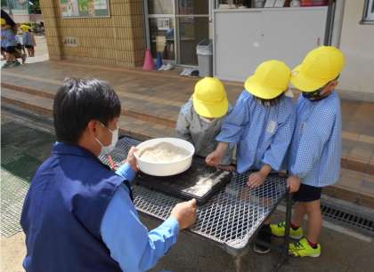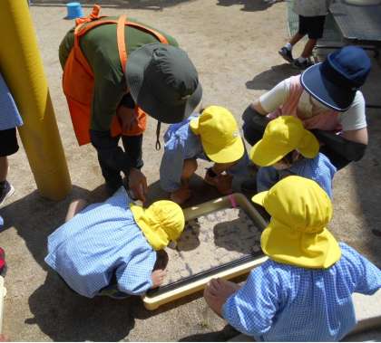 「ヒマワリの種を植えた時は、土に穴をあけたよ」「土が種のお布団だね」と自分の経験したことや感じたことを伝えたり、育苗トレイの底から吸い上げた水で、土の表面の色が変わると「わあ!」と不思議がったりしていました。5月には少し大きな苗ポットに植替えをします!それまで大事にそだてましょうね!