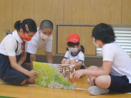 中大江小学校の4年生に、絵本の読み聞かせをしてもらったばら組さん。