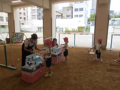 コイン落としや、ボール入れは子どもたちも真剣な表情でした!