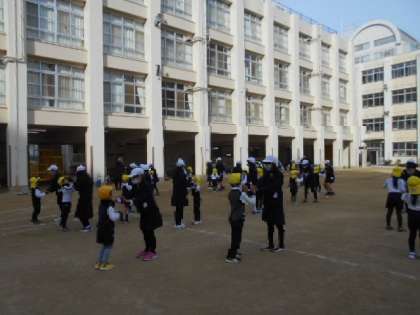 中大江小学校の5年生と一緒に凧揚げをしました。一緒に体を動かして遊んだ後、いよいよ凧揚げ!5年生は凧の糸を巻いたり、凧があげやすいように広げて持ってくれたり、幼稚園の子どもたち1人1人のペースに合わせて、とても優しく関わってくれました。「凧揚げ楽しかったよ!」という園児に、「はじめは恥ずかしそうにしていた子も、笑顔で凧揚げしてくれてうれしかった」という感想も伝えてくれました。「楽しかった!嬉しかった!」という気持ちを共有することができた素敵なふれあいでした!