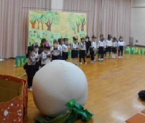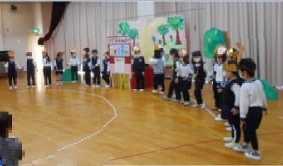 生活発表会を行いました。当日子どもたちは、たくさんのお家の方にちょっぴりビックリしながらも、お友達や先生と一緒に劇遊び・歌・楽器遊びを力を合わせてやり遂げました。お家の方の拍手や笑顔が子どもたちにとっては何よりも自信につながりました!