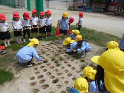 芝生を植えました! 公開日 2023/05/09 更新日 2023/05/09 幼稚園日記 地域の方と一緒に、園庭に芝生を植えました!きく組(5歳児)が芝生の苗を植え、ばら組(4歳児)が水やりをしてくれました。緑の芝生で楽しく遊ぶのが楽しみです. いいね(0)