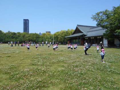 ふれあい園外保育(大阪城公園) 公開日 2023/05/18 更新日 2023/05/18 幼稚園日記 おうちの人と一緒に、大阪城公園・西の丸庭園に園外保育にいきました。シロツメクサもたくさん咲いている、緑の芝生でオリエンテーリングをしました。また、お家の人とかけっこや、おにごっこ等、体をたくさん動かして遊びました!みんなの笑顔がいっぱいでした! いいね(0)