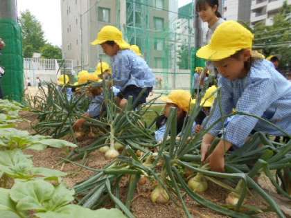 今日は、きく組(5歳児)が、たまねぎの収穫をしました!