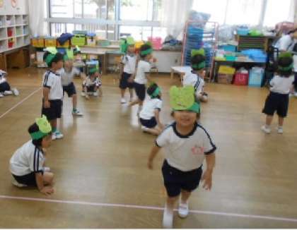 さくら組の保育室は、かわいいカエルがたくさんいる「かえるようちえん」になっていました!