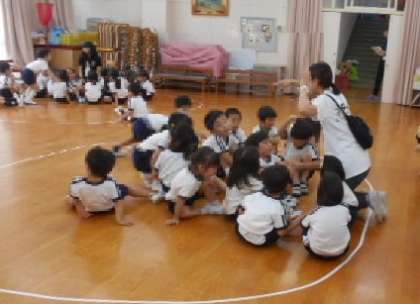 なかよしチームの玉入れの後、各チームの先生の話を聞いたり、作戦会議をしていました。