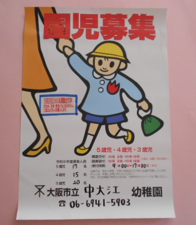 令和6年度 大阪市立中大江幼稚園の園児募集について、願書交付・受付の日時や募集人数等が決まりましたのでお知らせいたします