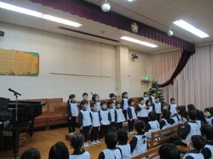 今日は、2学期終業式でした。園長先生のお話を聞いたり、お家の人に歌を聞いてもらったりしました。2学期もお友達や先生と元気に遊んで、心も体も大きく育った子どもたちです。冬休みも、健康と安全に気をつけて過ごしてくださいね!3学期に会えるのを楽しみにしています!