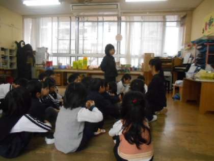 きく組は、幼稚園に戻ると、給食を参観して感じたことや、疑問に思ったことを話し合い、後日、1年生や小学校の先生に質問することにしました。次の交流も楽しみです。